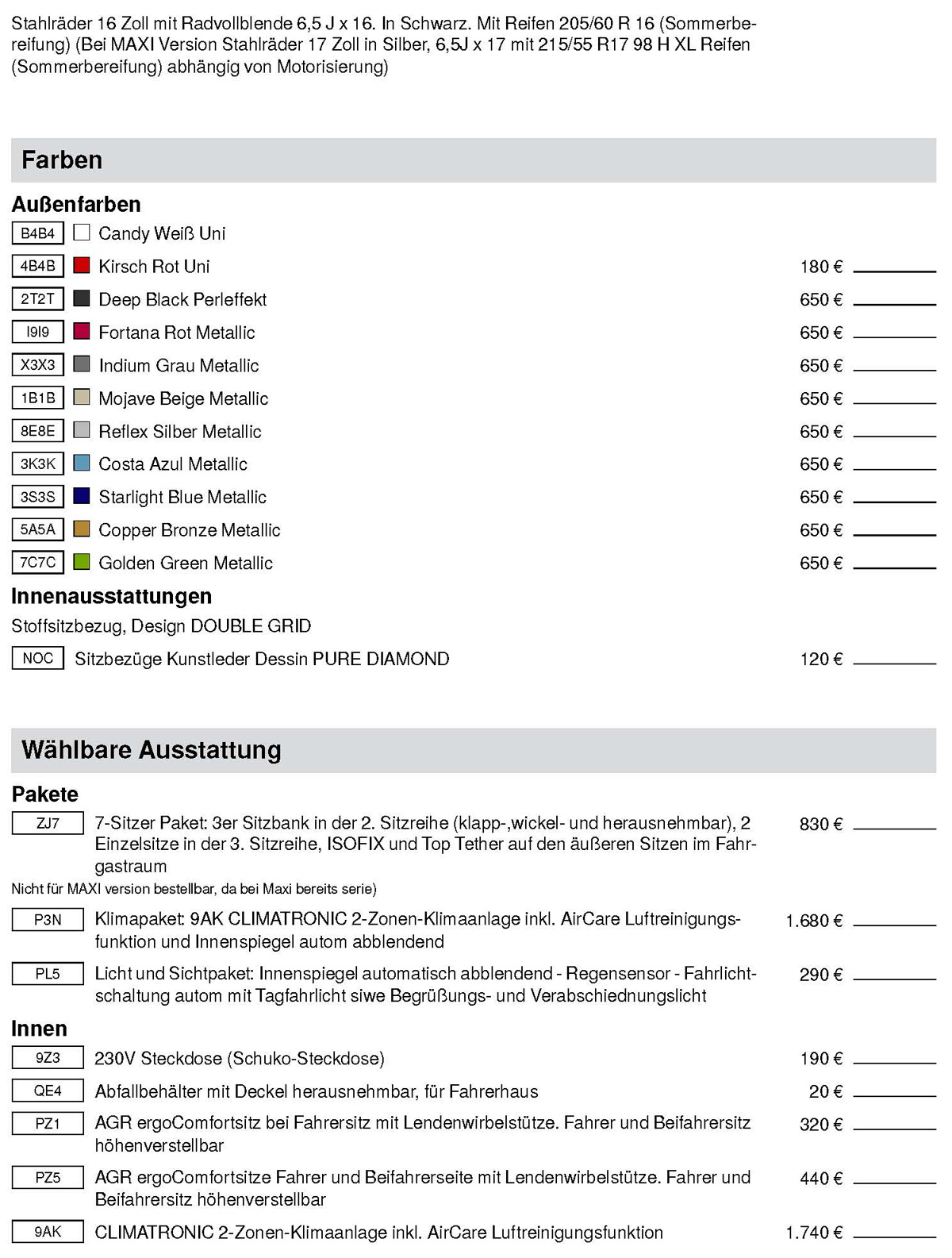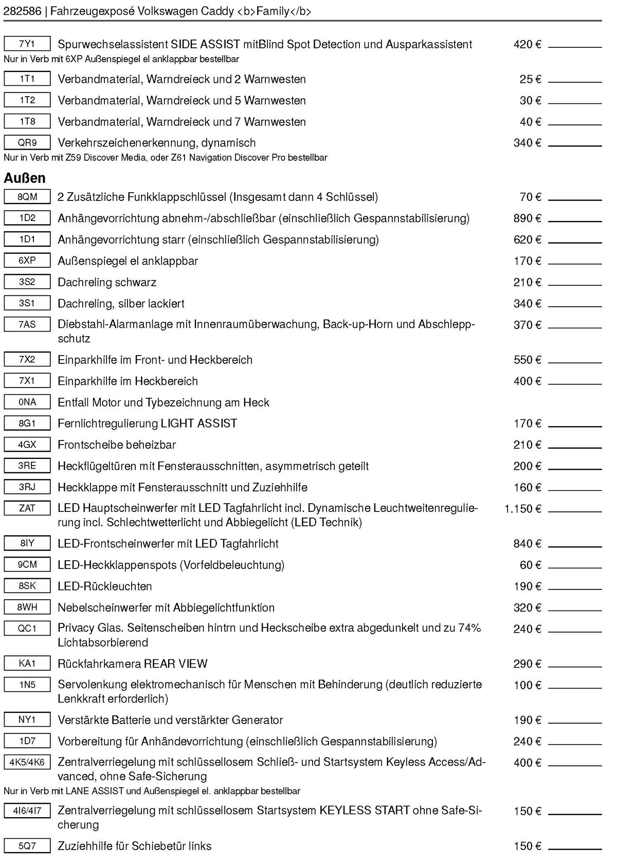 von Sonderausstattungen nachfolgend unsere EU-Preisliste.