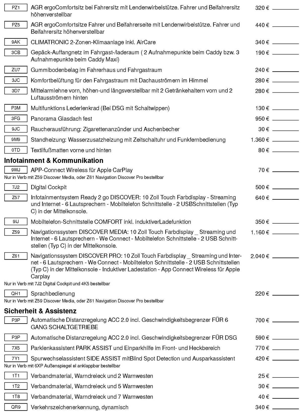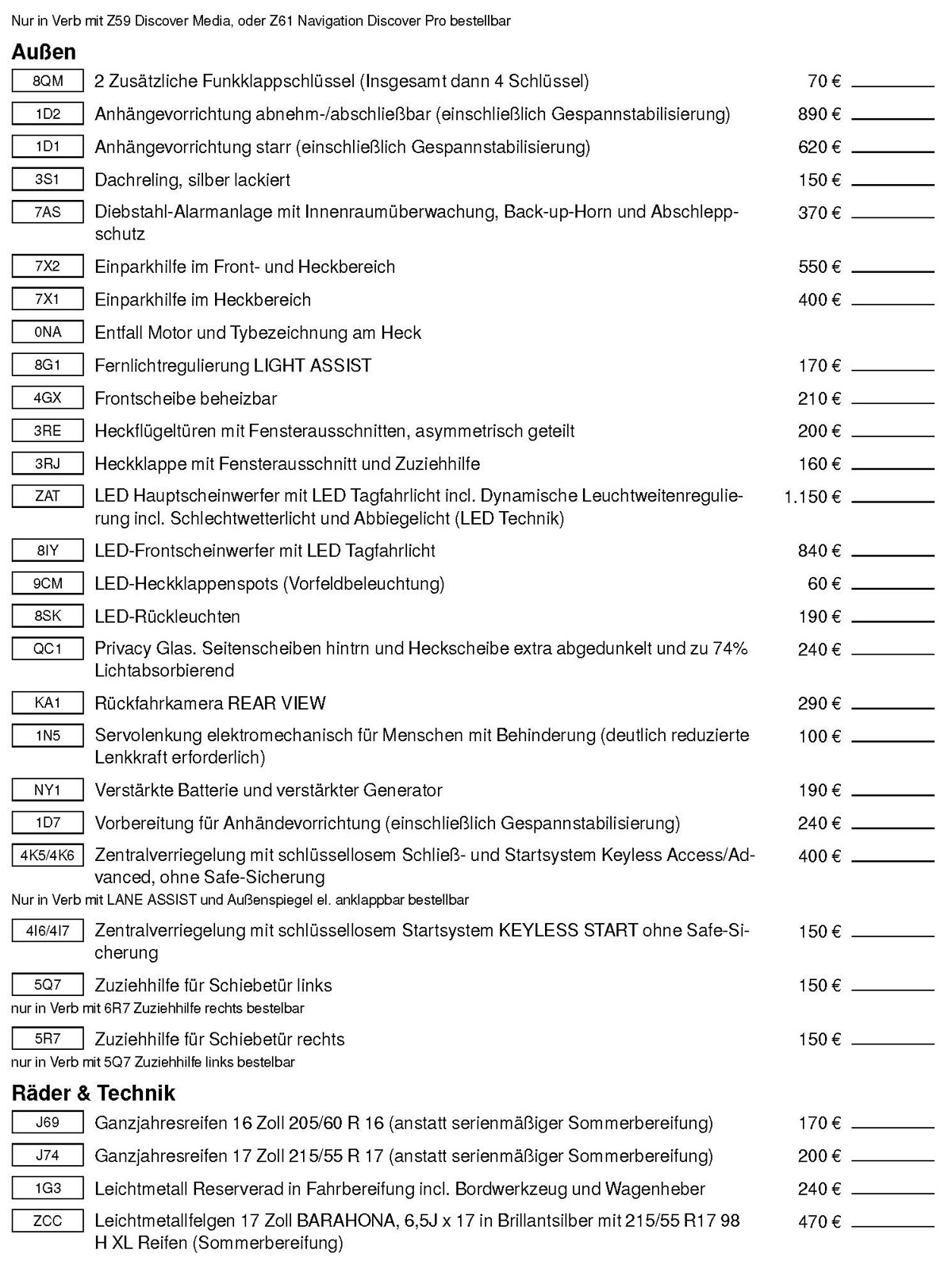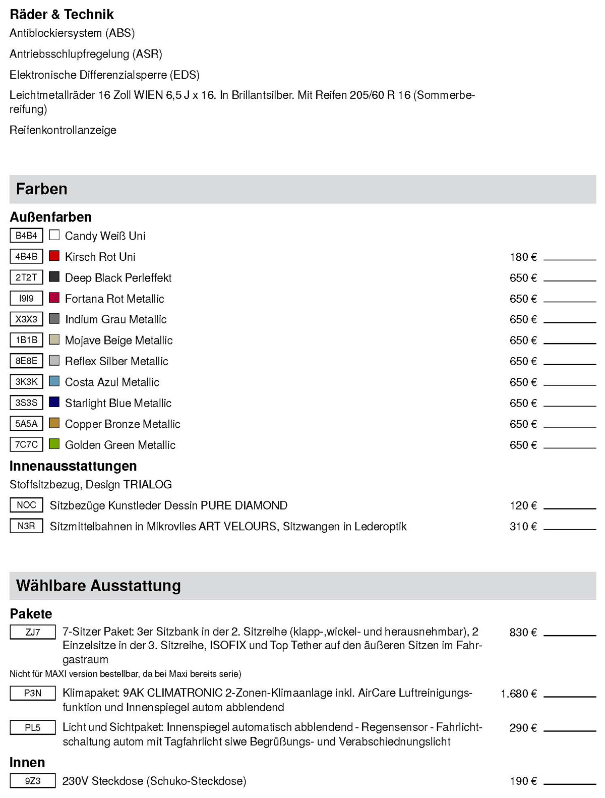 von Sonderausstattungen nachfolgend unsere EU-Preisliste.