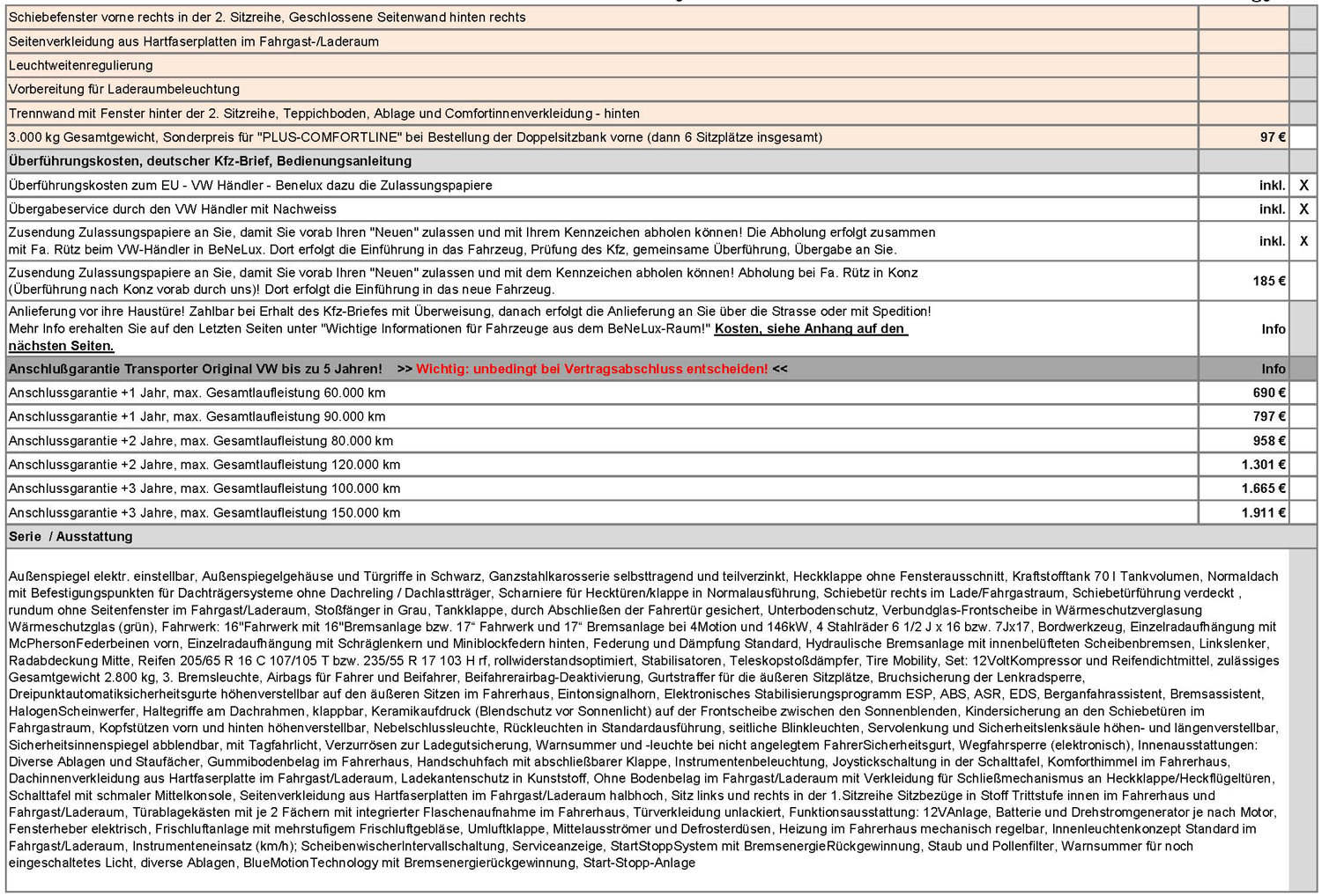 aktuellen Kalkulation im Anhang. Ihr Fahrzeug wird über die Straße