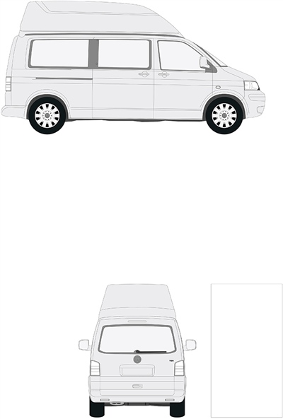 VW T5 + T6 mit langen Radstand stehen das Hochdach